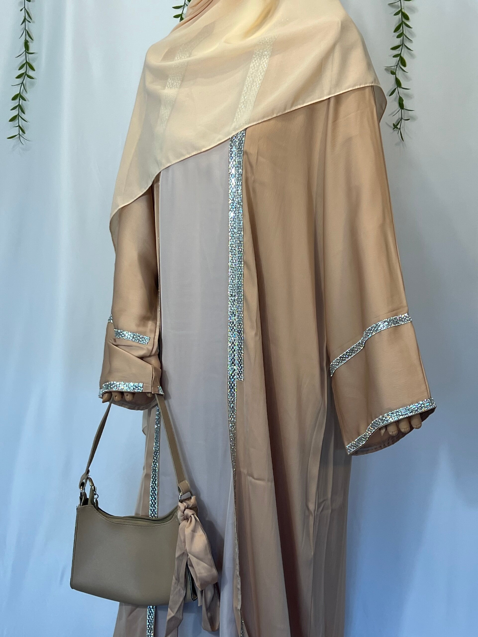 Design: Offene rosa Abaya mit silbernem Glitzerbesatz 🌸