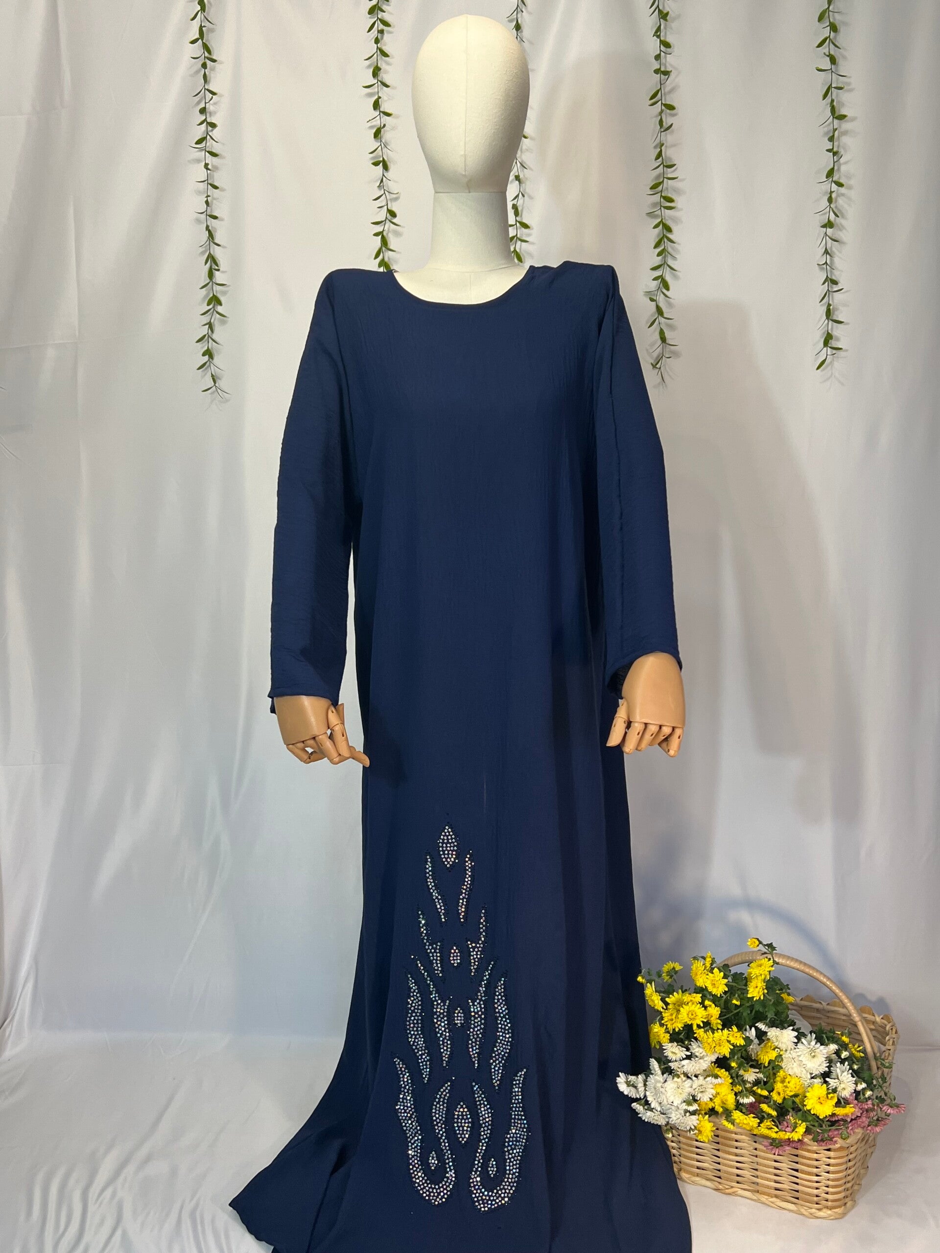 Abaya Layyin – Dunkelblaue Abaya mit funkelnder Steinapplikation