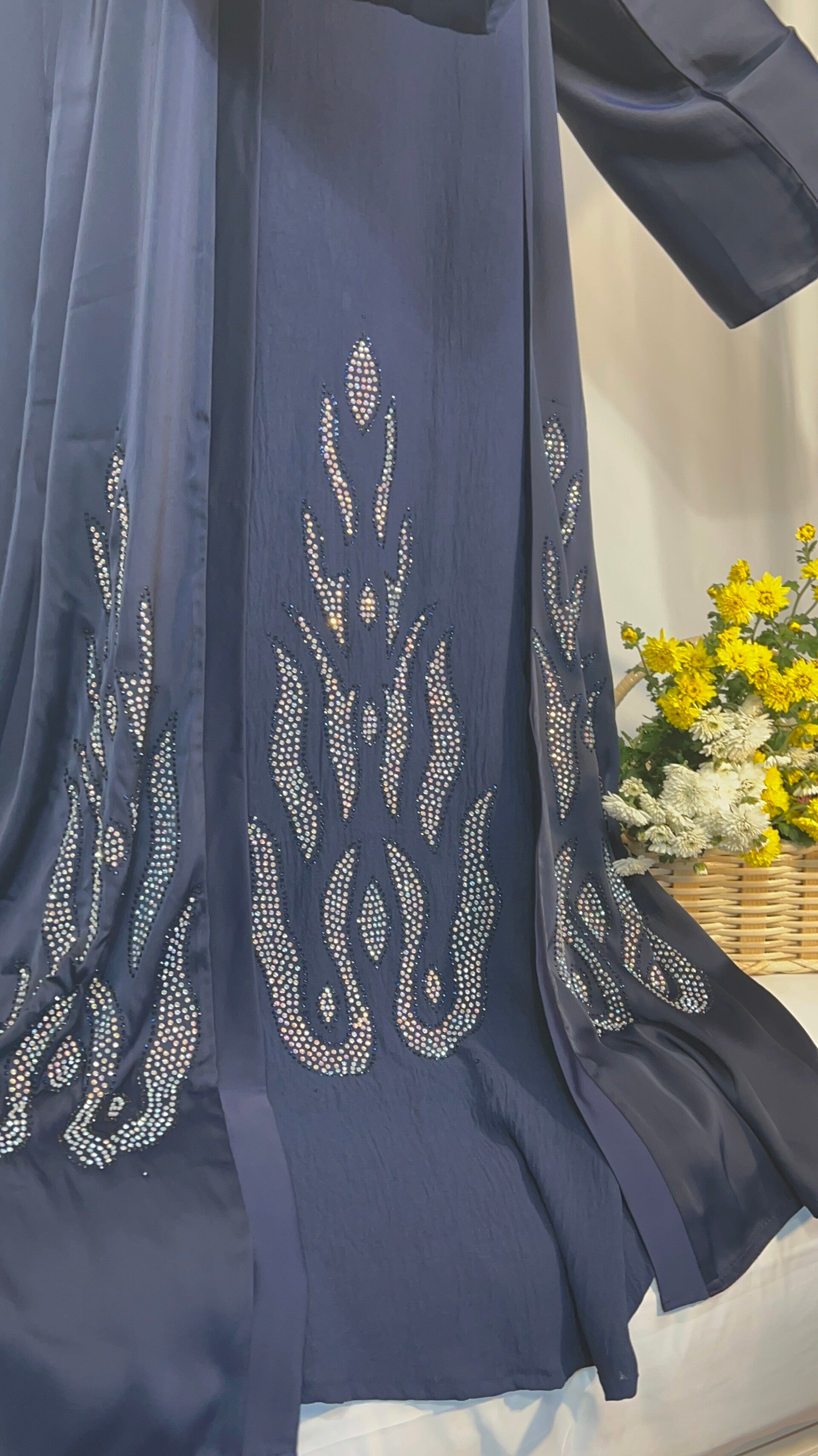 Design: Offene Abaya mit Steinapplikationen im Flammenmuster ✨