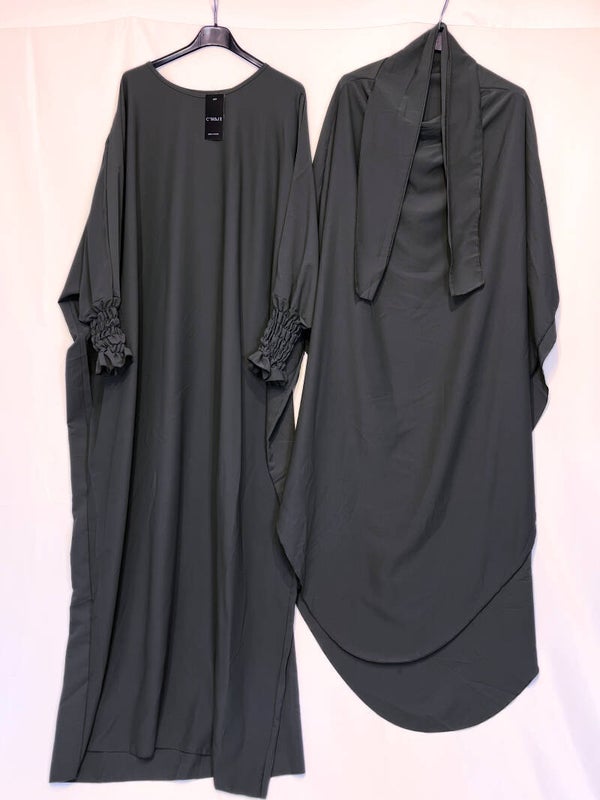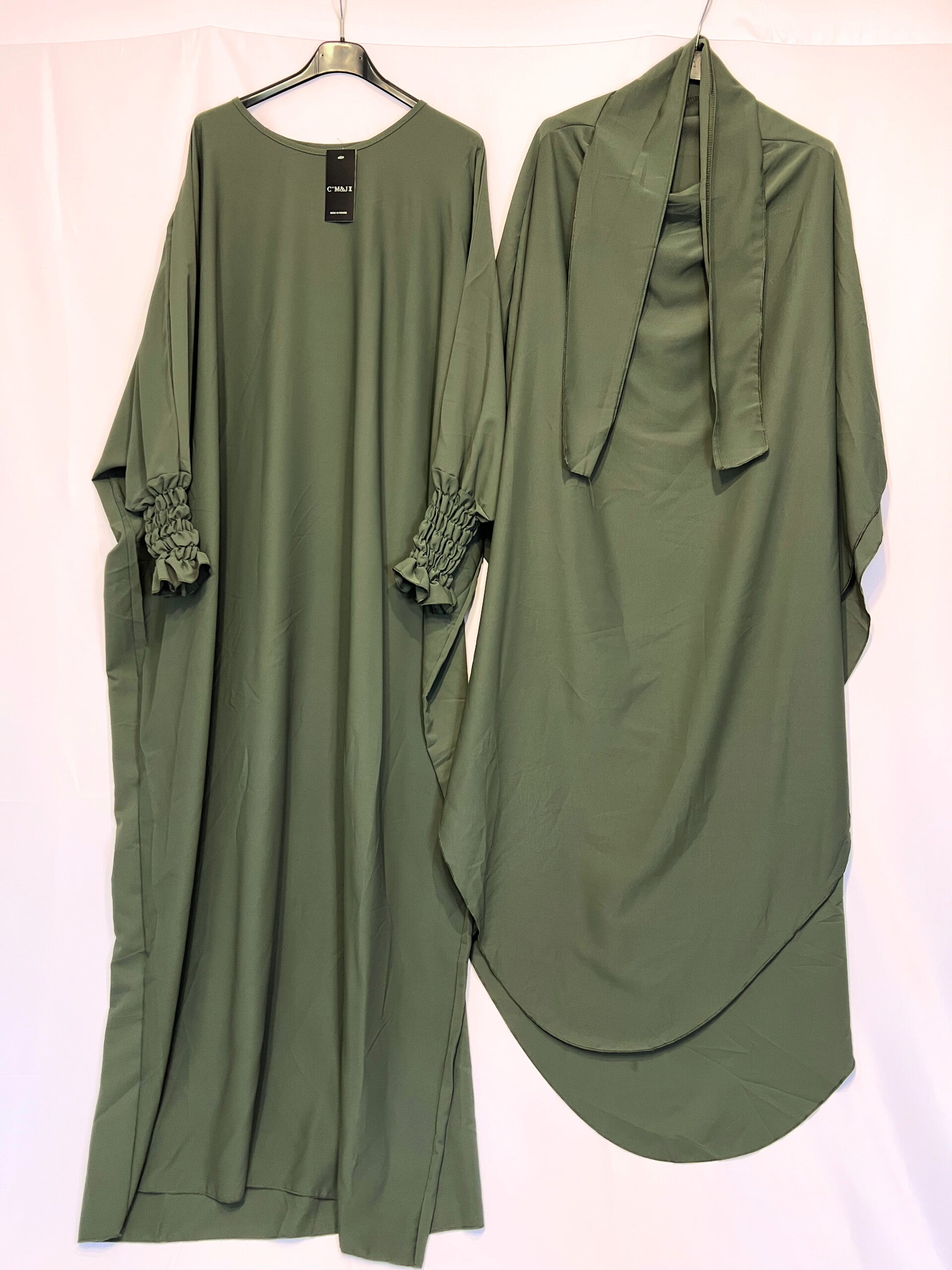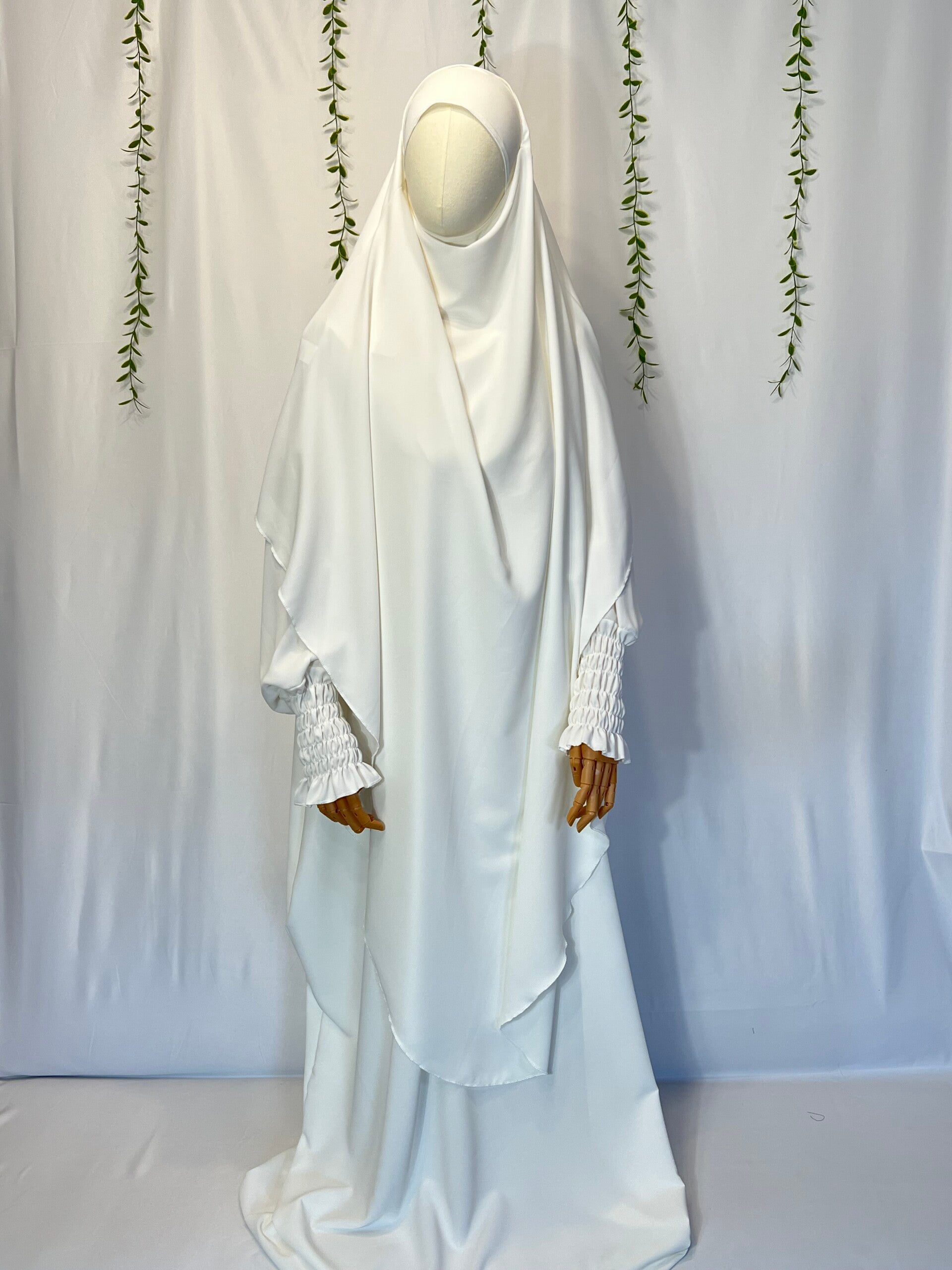 Ein wunderschön fließendes Khimar-Set mit leichtem Glanz (Silo-Effekt), perfekt geeignet für den Alltag, das Gebet oder festliche Anlässe. Der Stoff ist angenehm auf der Haut, blickdicht und fällt elegant.